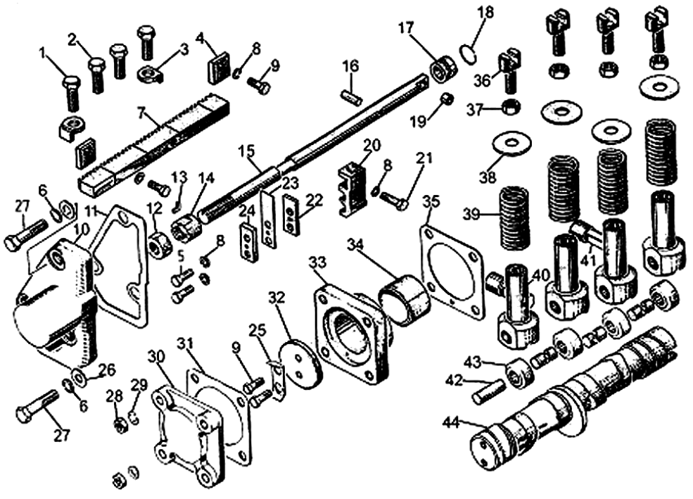 Механизм привода плунжеров топливного насоса на Т10М