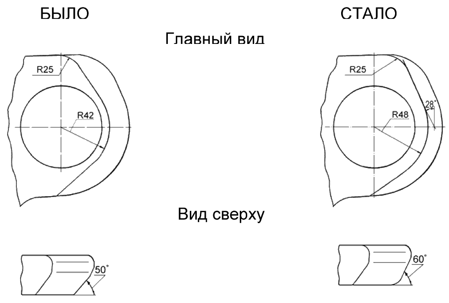изменены размеры поковки
