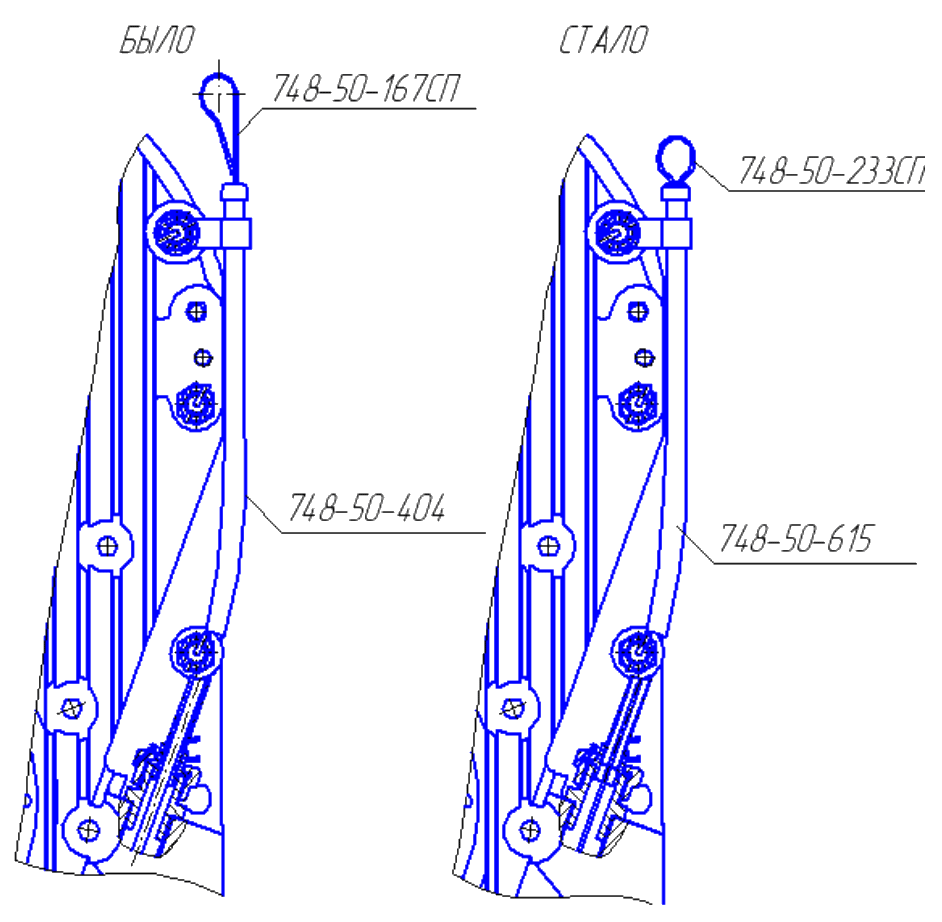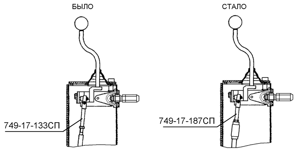 Для обеспечения доступа через люк к регулировочным муфтам 748-17-364СП и снижения трудоемкости регулировок тяг в эксплуатации изменена длина тяг 749-17-155СП и 749-17-156СП привода управления трактором ДЭТ-320.
