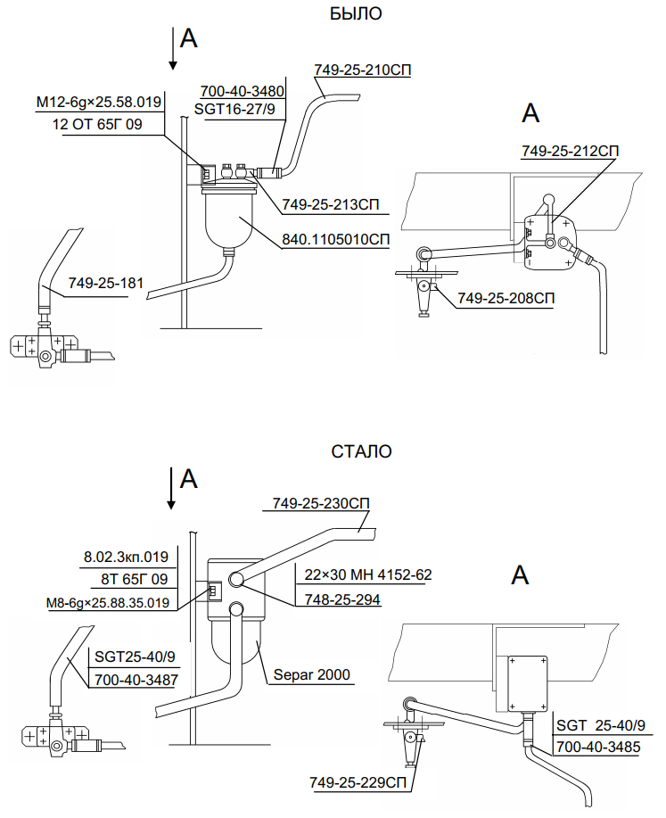С целью унификации труб гидропривода на тракторе ДЭТ-320 взамен труб 748-99-138СП и 748-99-139СП применены трубы 748-99-615СП и 748-99-621СП трактора ДЭТ-250М2.