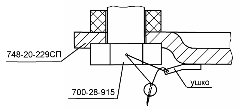 Пломба крепится с помощью проволоки и вновь введенного болта 700-28-915 с отверстием в головке к ушку для пломбирования, приваренному к крышке.