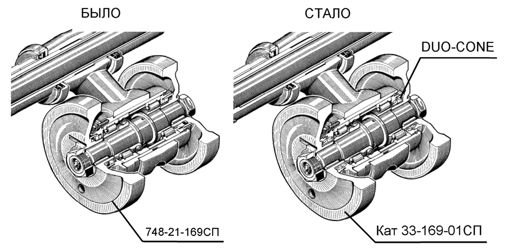 С целью повышения герметичности и надежности катков на тракторах ДЭТ-250М и ДЭТ-320 установлены катки Кат 33-169-01СП с уплотнением DUO-CONE взамен катков 748-21-169СП.