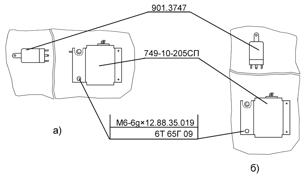 • на задней стенке кабины под реле 901.3747, рис. б) - для трактора ДЭТ-250М2.