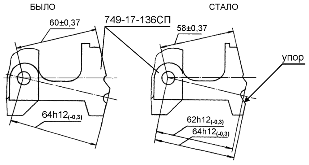 Для обеспечения четкости управляемости трактора ДЭТ-320 (ликвидации люфта рычага управления в транспортном положении) введено ограничение хода вилки 749-17-136СП в мостике 749-17-144СП за счет выполнения упора.