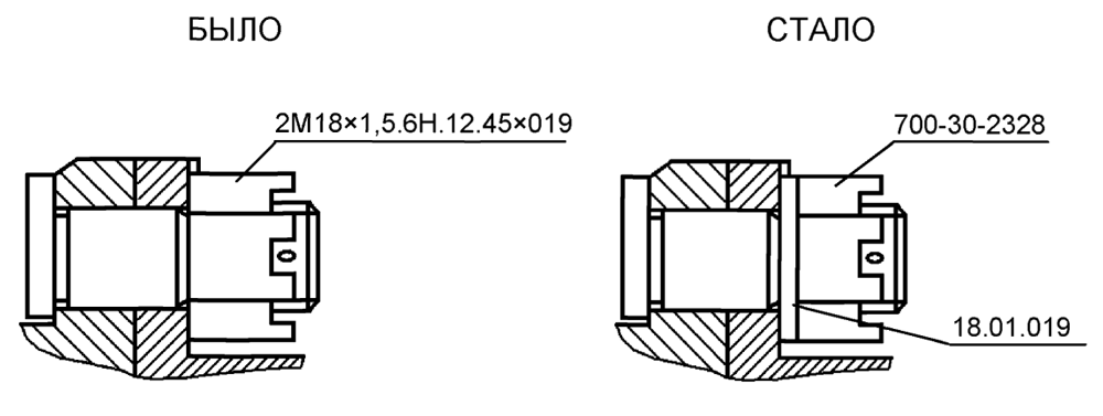 С целью повышения надежности соединения фрикционной и соединительной муфт и унификации гаек, взамен гаек 2М18×1,5.6Н.12.45×019 установлены 700-30-2328 (6 шт.). При этом введены шайбы 18.01.019.