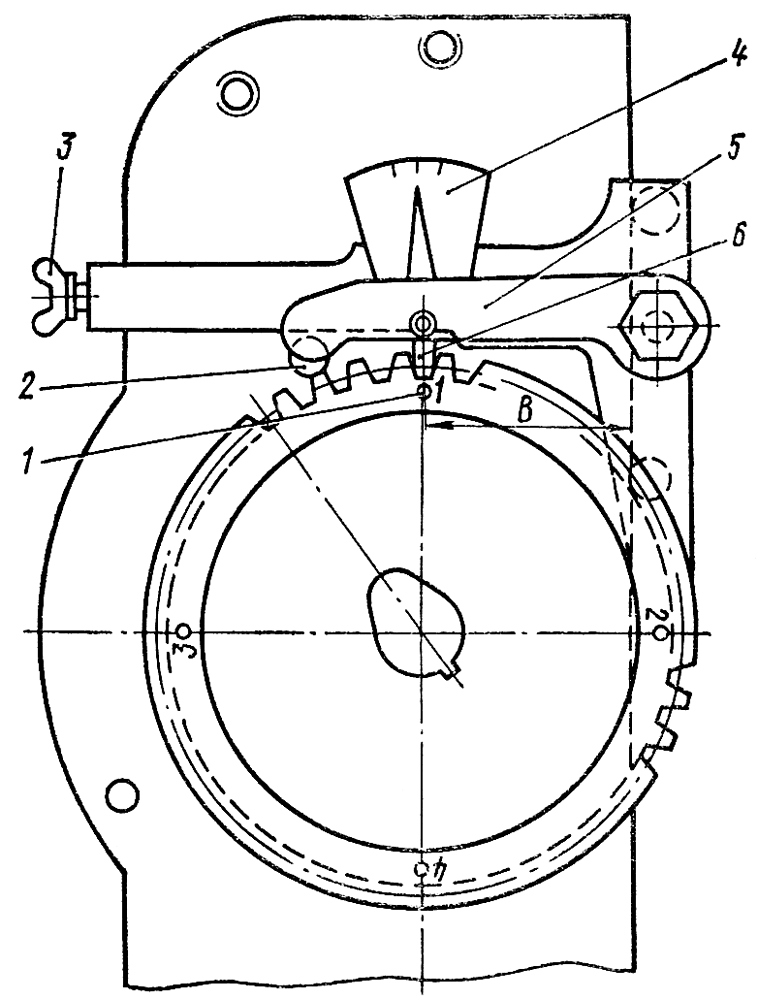 B = (73±0,4) мм для дизелей Д-160 и Д-160Б — расстояние от привалочной плоскости корпуса регулятора до оси впадины зубьев, отмеченной меткой;