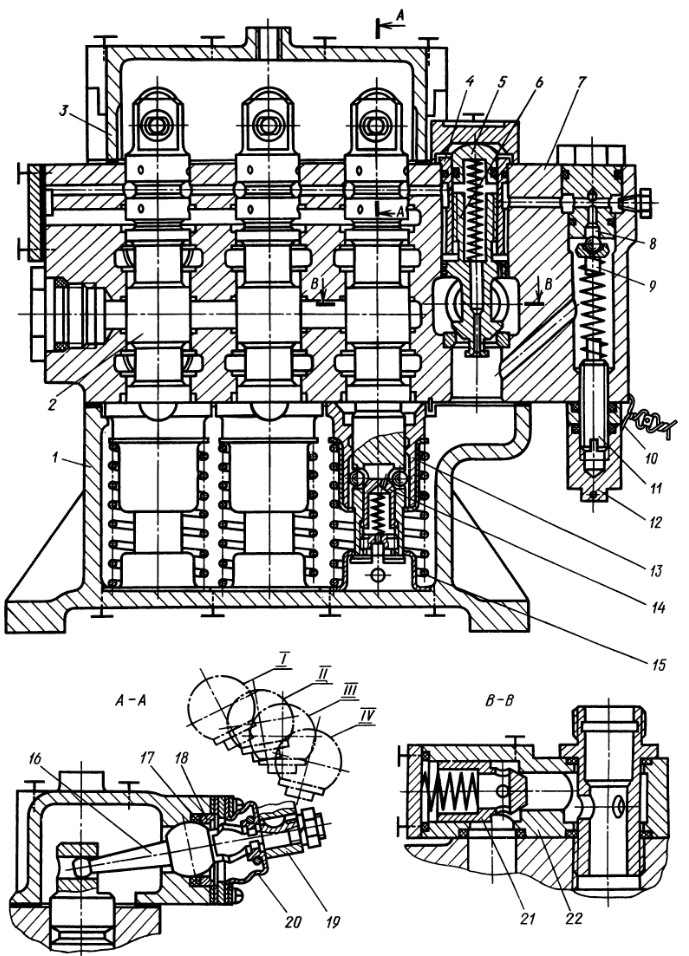 Запрещается оставлять на длительное время рычаги распределителя в положении «подъем» и «принудительное опускание», так как рабочая жидкость будет перетекать через предохранительный клапан под высоким давлением, вызывая перегрев масла и заклинивание подшипников насоса.